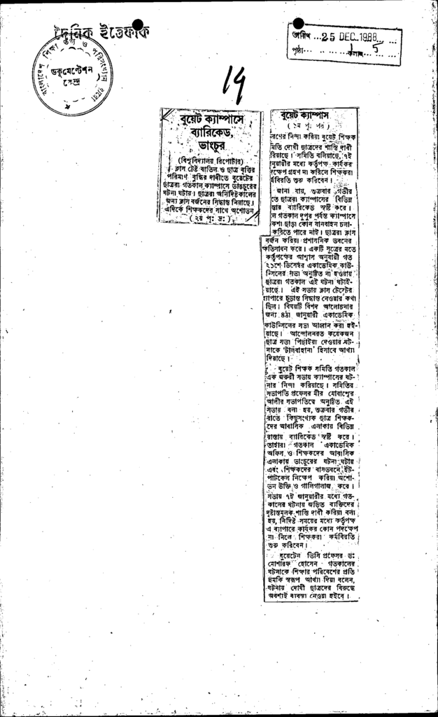 বুয়েট ক্যাম্পাসে ব্যারিকেড ভাংচুর Published on Newspaper দৈনিক ইত্তেফাক Category Professional Education Professional Education Engineering Download