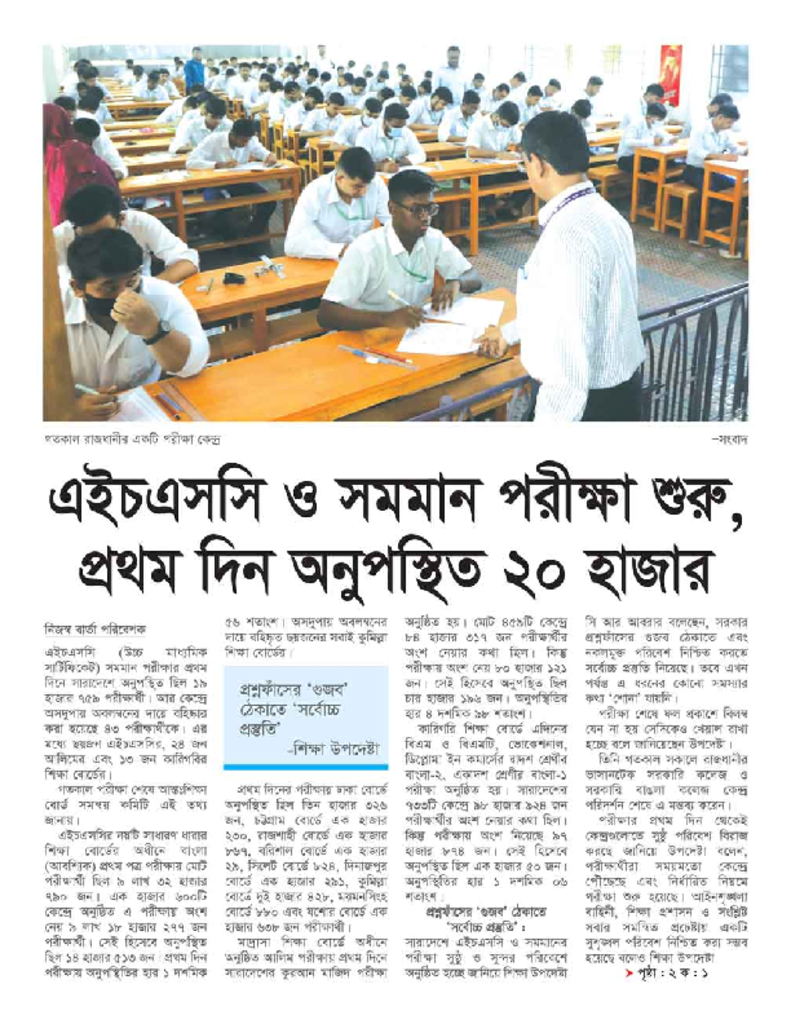 এইচএসসি ও সমমান পরীক্ষা শুরু, প্রথম দিন অনুপস্থিত ২০ হাজার.pdf Published on 27 June 2025 Newspaper দৈনিক সংবাদ Category Public Examination Public Examination HSC Download