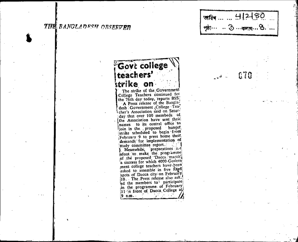 Gpvt college teachrs' strike on Published on Newspaper The Bangladesh Observer Category General Education Download