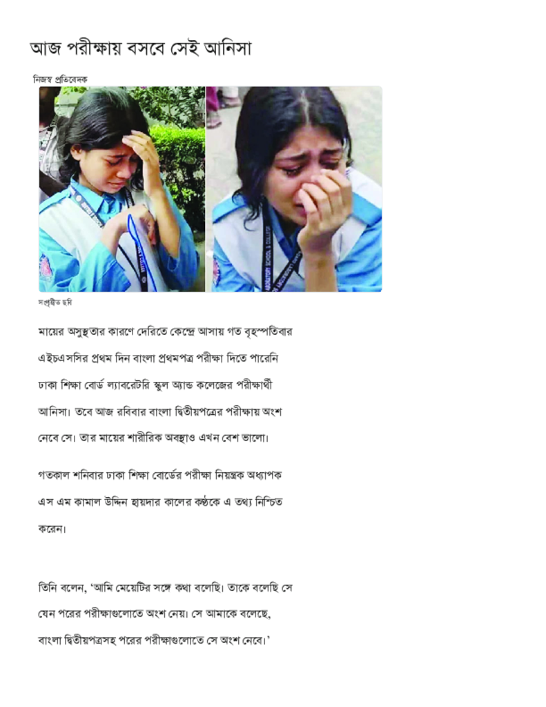আজ পরীক্ষায় বসবে সেই আনিসা.pdf Published on 29 June 2025 Newspaper দৈনিক কালের কন্ঠ Category Public Examination Public Examination HSC Download