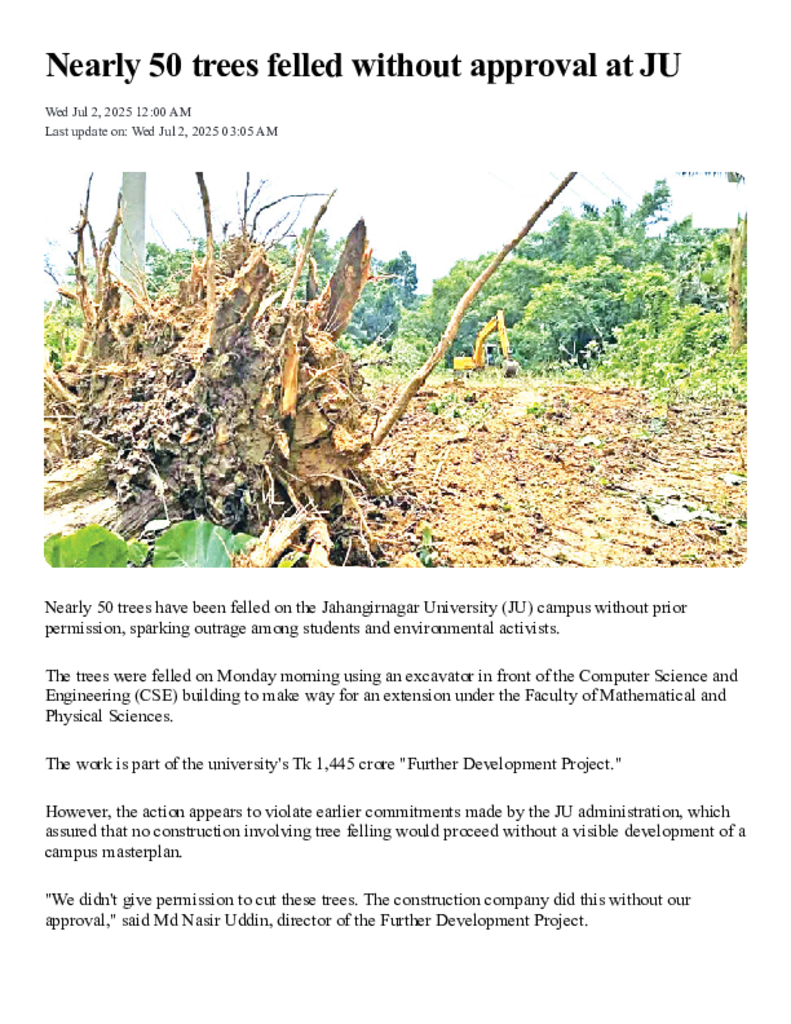 Nearly 50 trees felled without approval at JU _ The Daily Star.pdf Published on 02 July 2025 Newspaper The Daily Star Category Others General Education Download