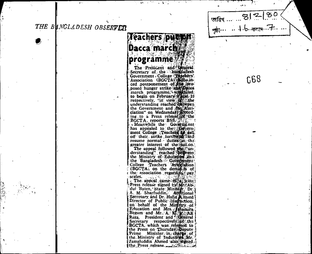 Teachers put dacca march programme Published on Newspaper The Bangladesh Observer Category General Education Download