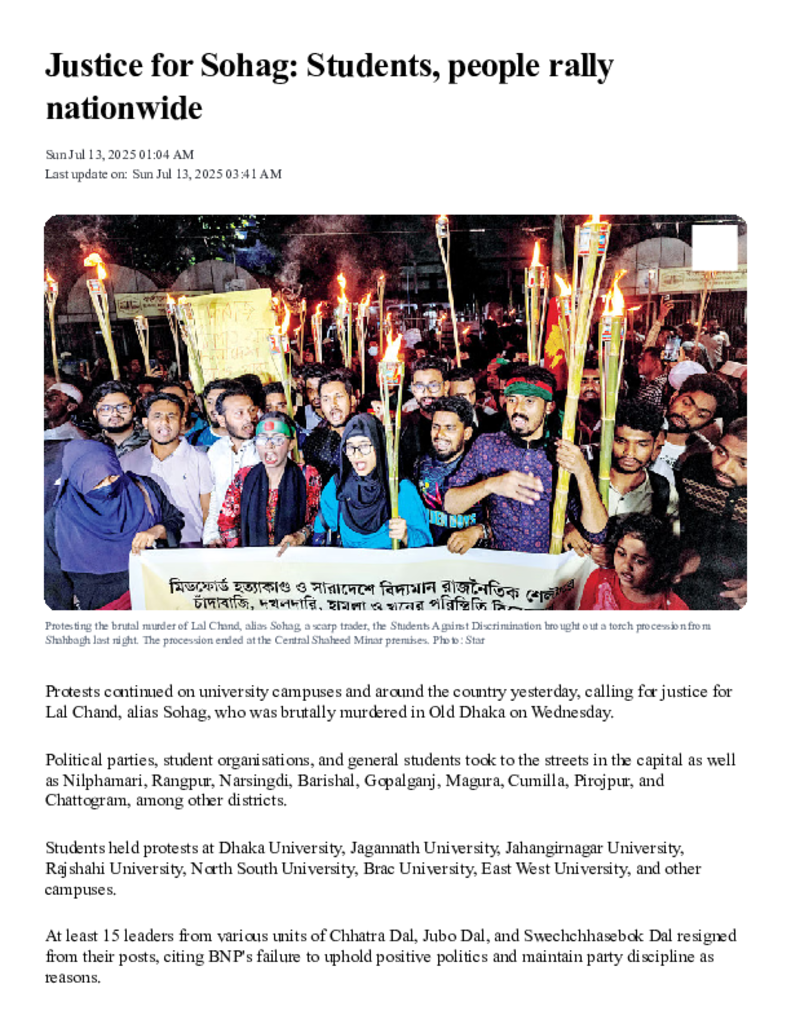 Justice for Sohag_ Students, people rally nationwide _ The Daily Star.pdf Published on 13 July 2025 Newspaper The Daily Star Category Personal Opinion / Discussion / Commentary Download
