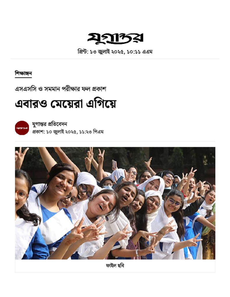এবারও মেয়েরা এগিয়ে.pdf Published on 10 July 2025 Newspaper দৈনিক যুগান্তর Category Public Examination Public Examination SSC Download
