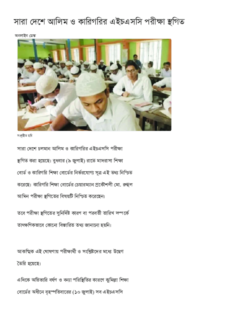 সারা দেশে আলিম ও কারিগরির এইচএসসি পরীক্ষা স্থগিত.pdf Published on 10 July 2025 Newspaper দৈনিক কালের কন্ঠ Category Public Examination Public Examination Others Download
