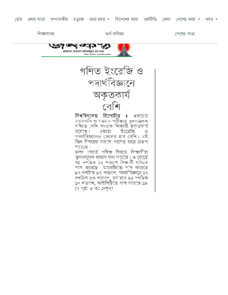 গণিত ইংরেজি ও পদার্থবিজ্ঞানে অকৃতকার্য বেশি.pdf Published on 11 July 2025 Newspaper দৈনিক জনকণ্ঠ Category Public Examination Public Examination SSC Download