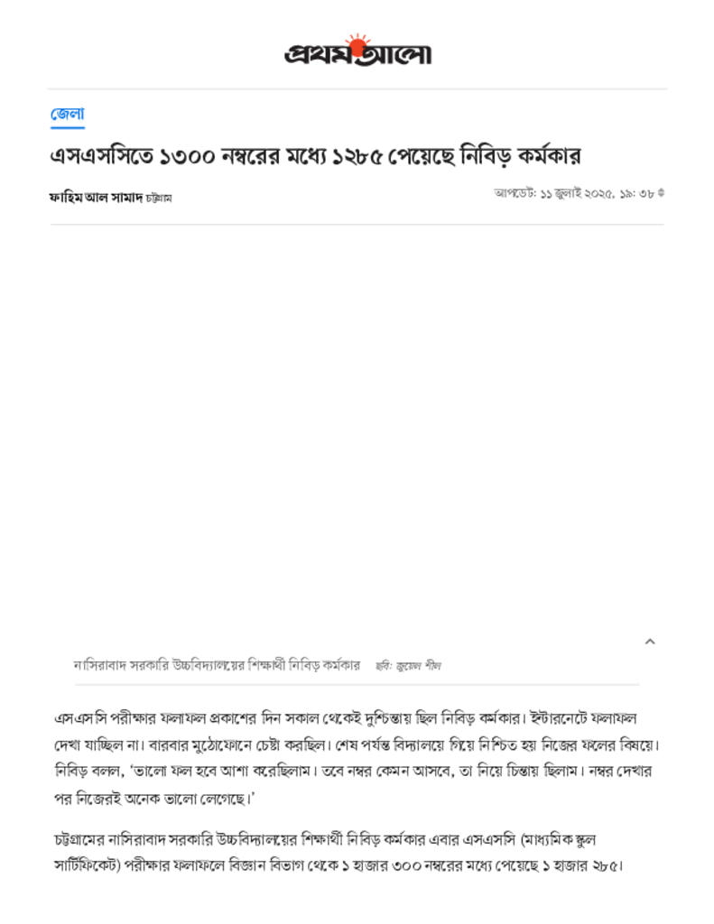 এসএসসিতে ১৩০০ নম্বরের মধ্যে ১২৮৫ পেয়েছে নিবিড় কর্মকার _ প্রথম আলো.pdf Published on 11 July 2025 Newspaper দৈনিক প্রথম আলো Category Public Examination Public Examination SSC Download