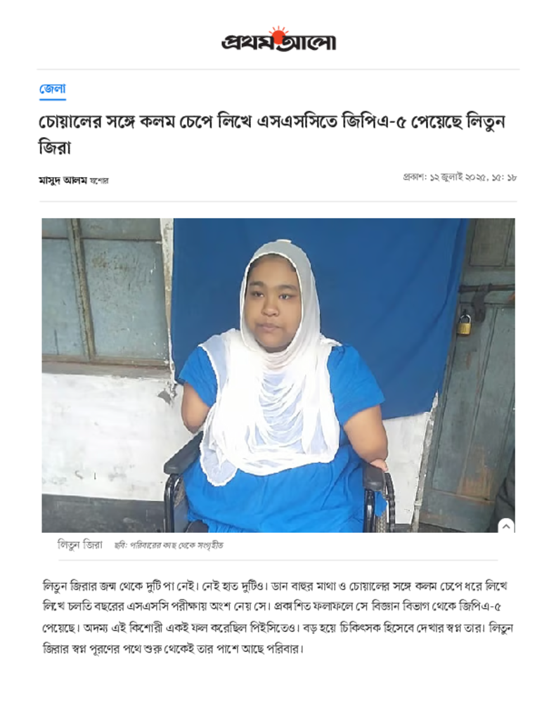 চোয়ালের সঙ্গে কলম চেপে লিখে এসএসসিতে জিপিএ-৫ পেয়েছে লিতুন জিরা.pdf Published on 12 July 2025 Newspaper দৈনিক প্রথম আলো Category Public Examination Public Examination SSC Download