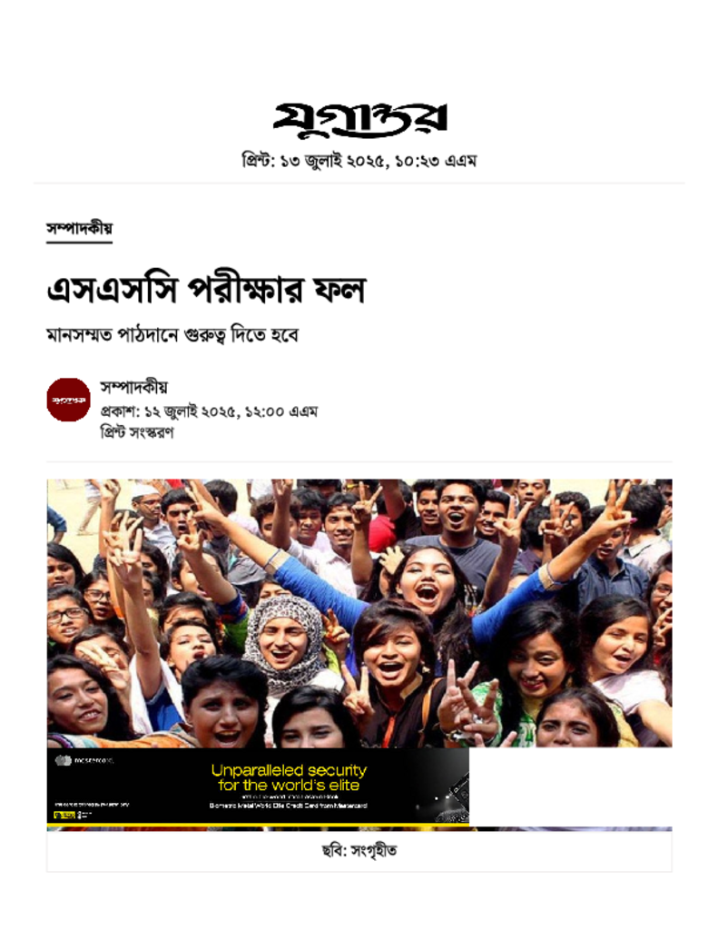 এসএসসি পরীক্ষার ফল.pdf Published on 12 July 2025 Newspaper দৈনিক যুগান্তর Category Personal Opinion / Discussion / Commentary Public Examination SSC Download