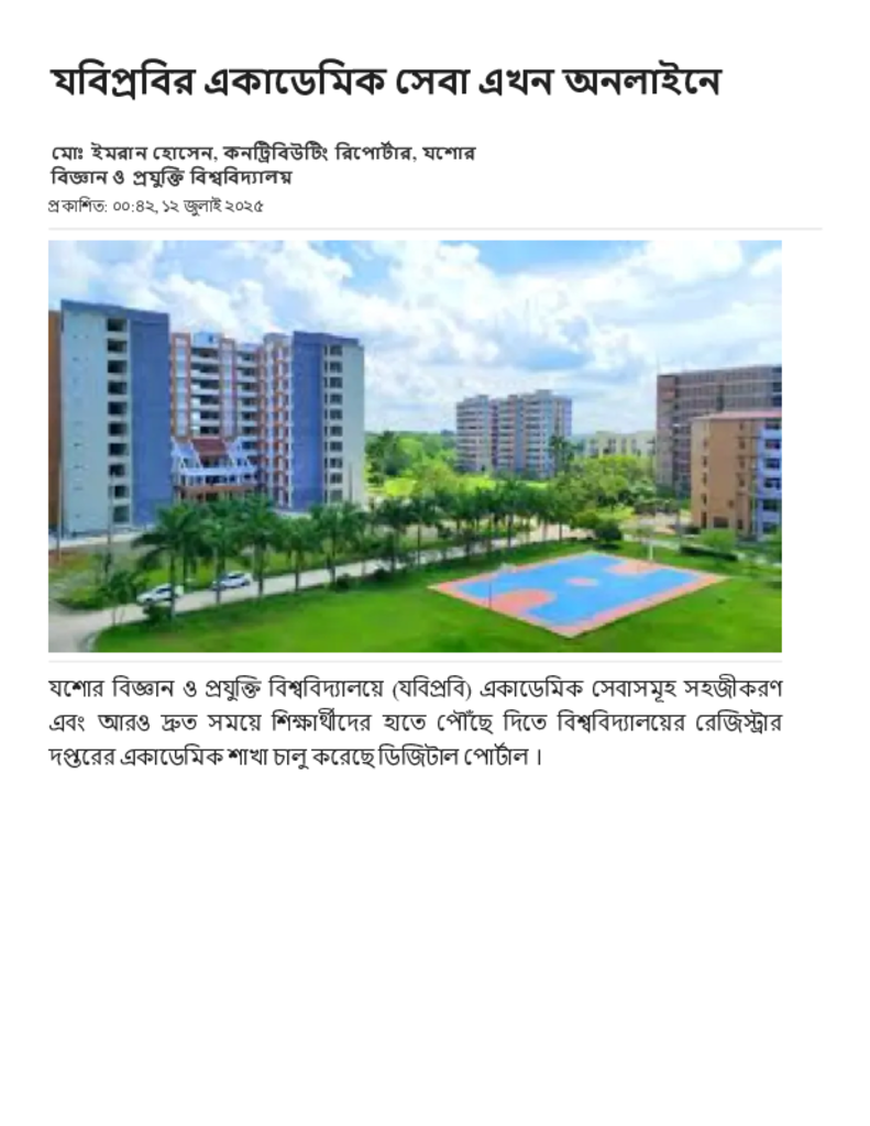 যবিপ্রবির একাডেমিক সেবা এখন অনলাইনে.pdf Published on 12 July 2025 Newspaper দৈনিক জনকণ্ঠ Category Professional Education General Education Download