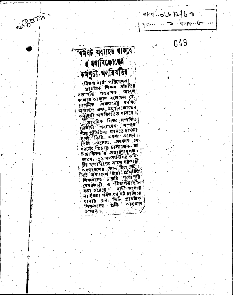 ধর্মঘট অব্যাহত থাকবে ও মহাবিক্ষোভের কর্মসূচী অপরিবতিত Published on Newspaper দৈনিক সংবাদ Category General Education Download