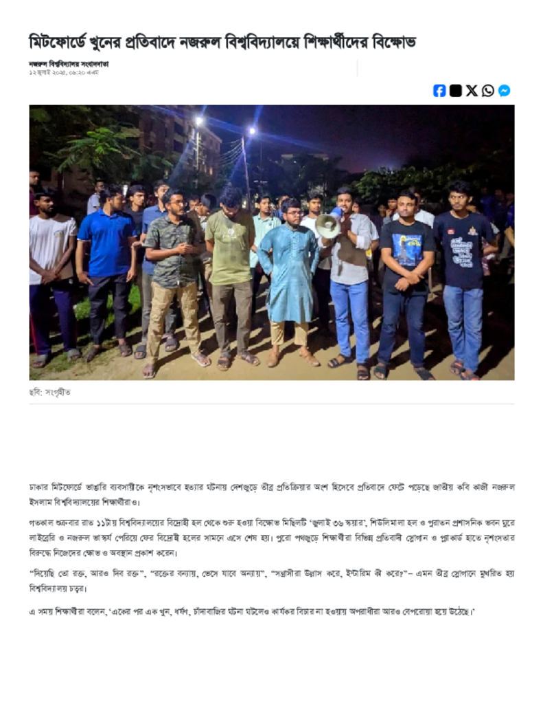 মিটফোর্ডে খুনের প্রতিবাদে নজরুল বিশ্ববিদ্যালয়ে শিক্ষার্থীদের বিক্ষোভ.pdf Published on 12 July 2025 Newspaper দৈনিক আমাদের সময় Category Others Download