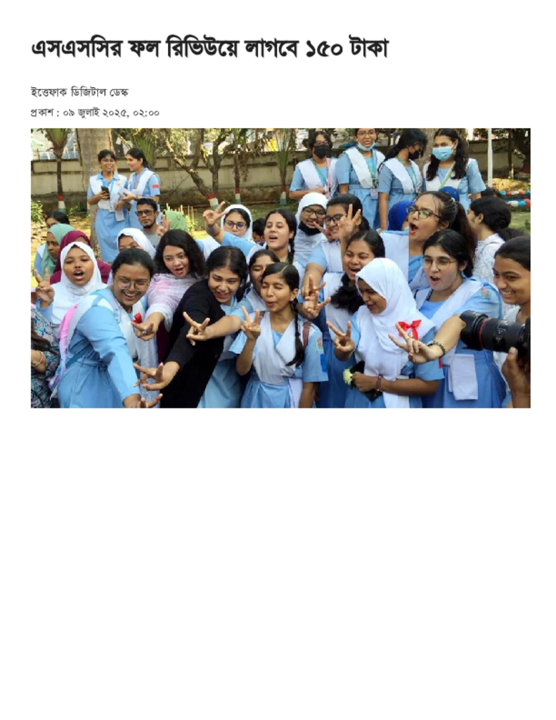 এসএসসির ফল রিভিউয়ে লাগবে ১৫০ টাকা.pdf Published on 09 July 2025 Newspaper দৈনিক ইত্তেফাক Category Public Examination Public Examination SSC Download