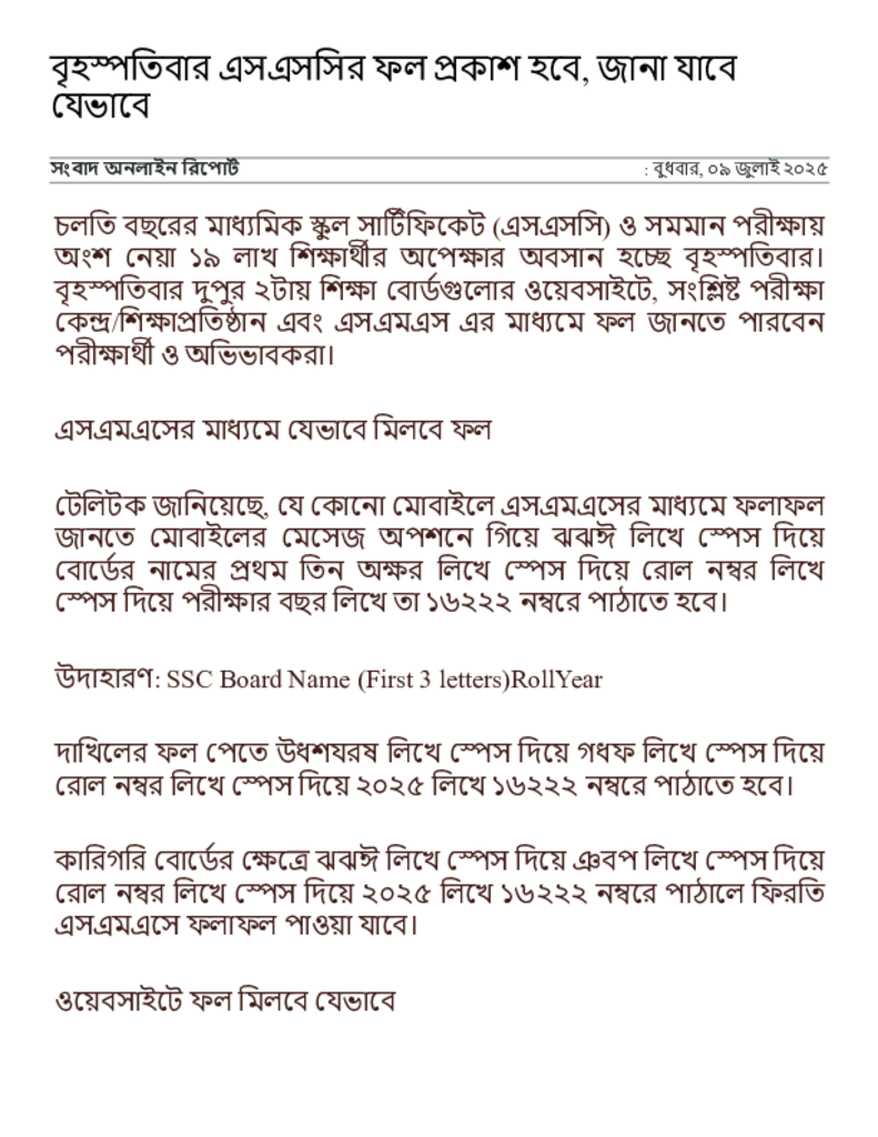 বৃহস্পতিবার এসএসসির ফল প্রকাশ হবে, জানা যাবে যেভাবে _ সংবাদ অনলাইন.pdf Published on 09 July 2025 Newspaper দৈনিক সংবাদ Category Public Examination Public Examination SSC Download
