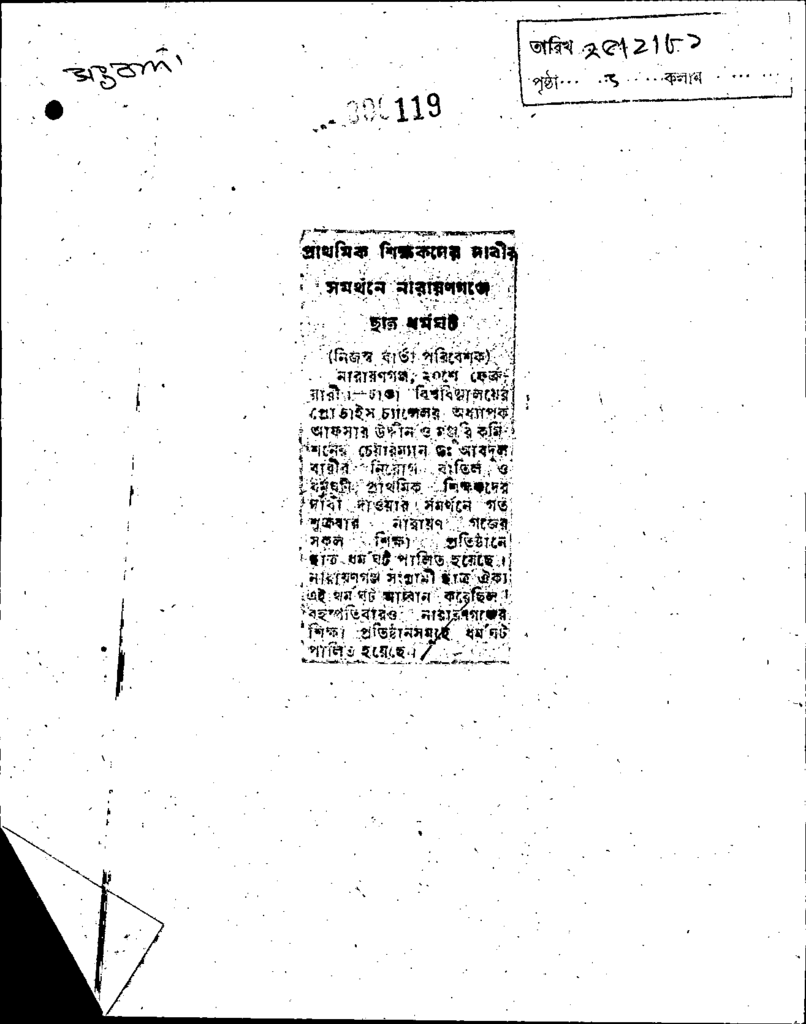 প্রাথমিক শিক্ষকদের দাবীর সমর্থনে নারায়ণগঞ্জে ছাত্র ধর্মঘট Published on Newspaper দৈনিক সংবাদ Category General Education Download