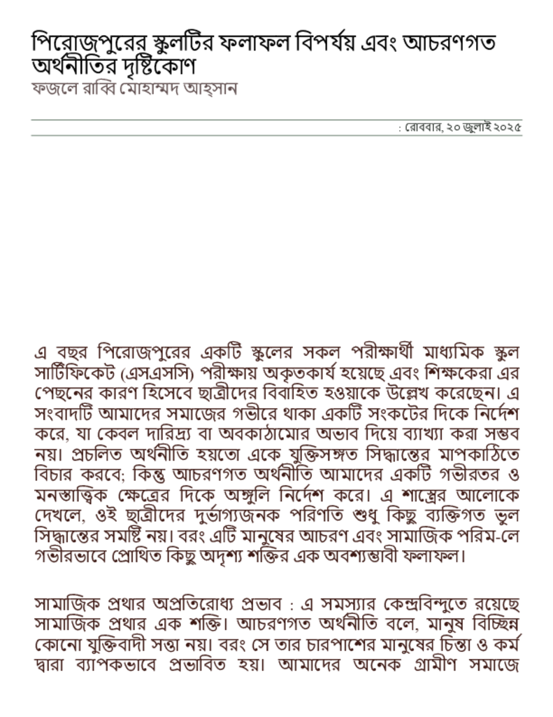 পিরোজপুরের স্কুলটির ফলাফল বিপর্যয় এবং আচরণগত অর্থনীতির দৃষ্টিকোণ.pdf Published on 20 July 2025 Newspaper দৈনিক সংবাদ Category Personal Opinion / Discussion / Commentary Download