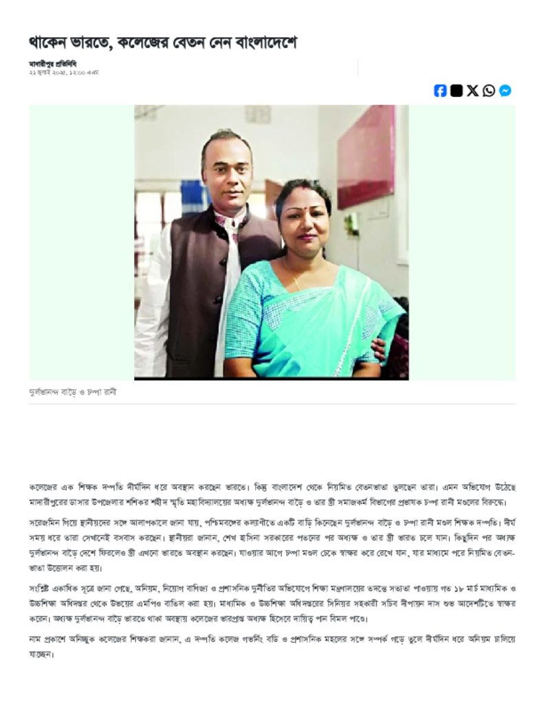 থাকেন ভারতে, কলেজের বেতন নেন বাংলাদেশে.pdf Published on 21 July 2025 Newspaper দৈনিক আমাদের সময় Category Personal Opinion / Discussion / Commentary Download