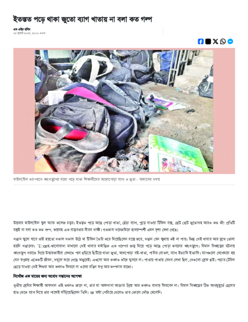 ইতস্তত পড়ে থাকা জুতো ব্যাগ খাতায় না বলা কত গল্প.pdf Published on 23 July 2025 Newspaper দৈনিক আমাদের সময় Category Personal Opinion / Discussion / Commentary Download