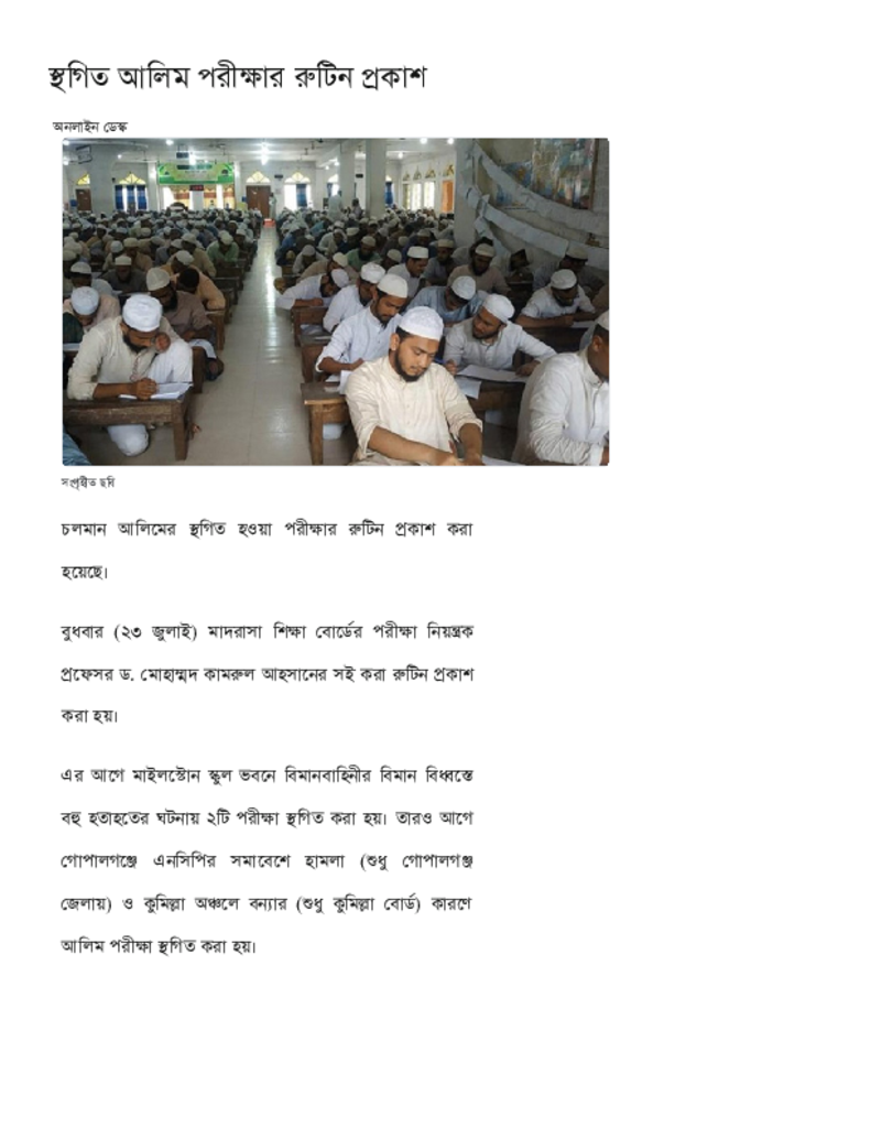 স্থগিত আলিম পরীক্ষার রুটিন প্রকাশ.pdf Published on 23 July 2025 Newspaper দৈনিক কালের কন্ঠ Category Madrasah Education Download
