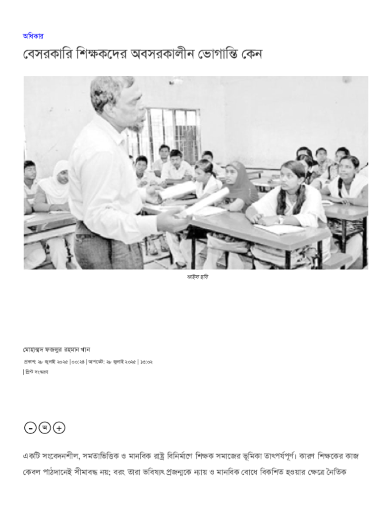 বেসরকারি শিক্ষকদের অবসরকালীন ভোগান্তি কেন.pdf Published on 28 July 2025 Newspaper দৈনিক সমকাল Category Personal Opinion / Discussion / Commentary Download