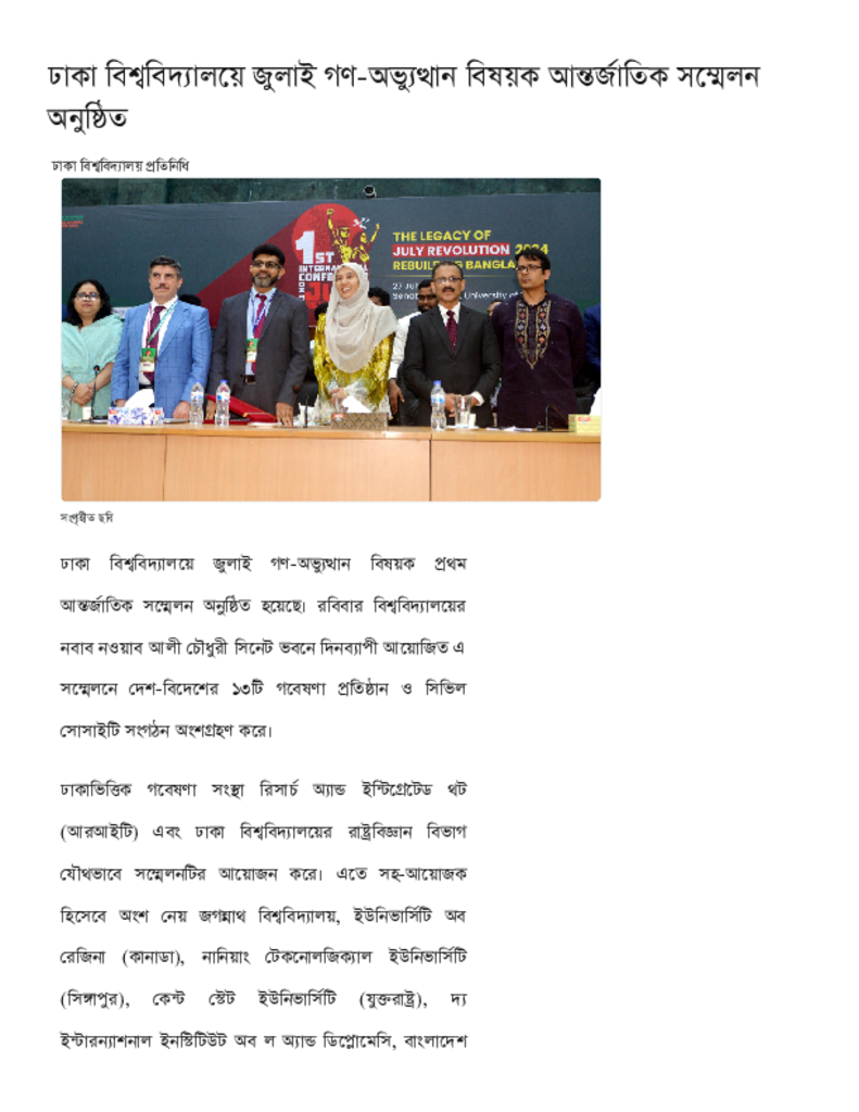 ঢাকা বিশ্ববিদ্যালয়ে জুলাই গণ-অভ্যুত্থান বিষয়ক আন্তর্জাতিক সম্মেলন অনুষ্ঠিত.pdf Published on 27 July 2025 Newspaper দৈনিক কালের কন্ঠ Category General Education General Education Download