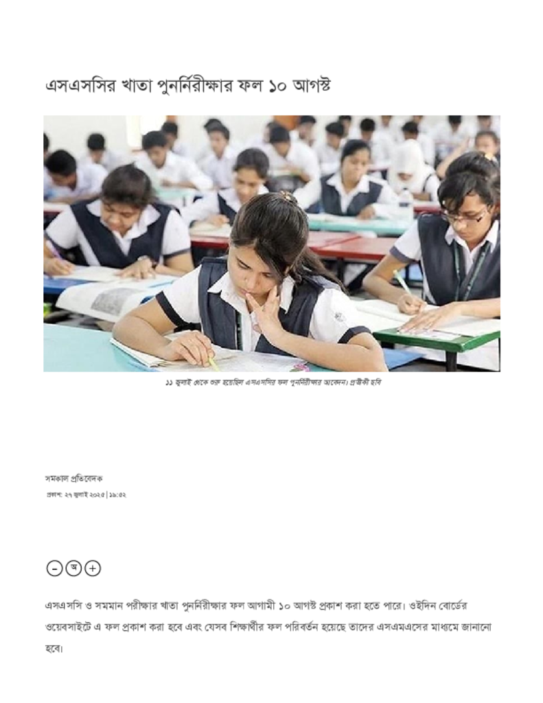 এসএসসির খাতা পুনর্নিরীক্ষার ফল ১০ আগস্ট.pdf Published on 27 July 2025 Newspaper দৈনিক সমকাল Category Public Examination Public Examination SSC Download