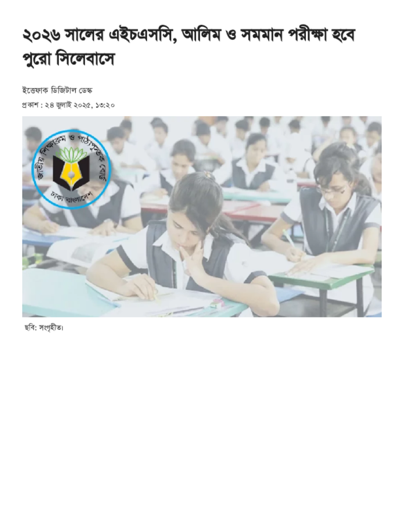 ২০২৬ সালের এইচএসসি, আলিম ও সমমান পরীক্ষা হবে পুরো সিলেবাসে.pdf