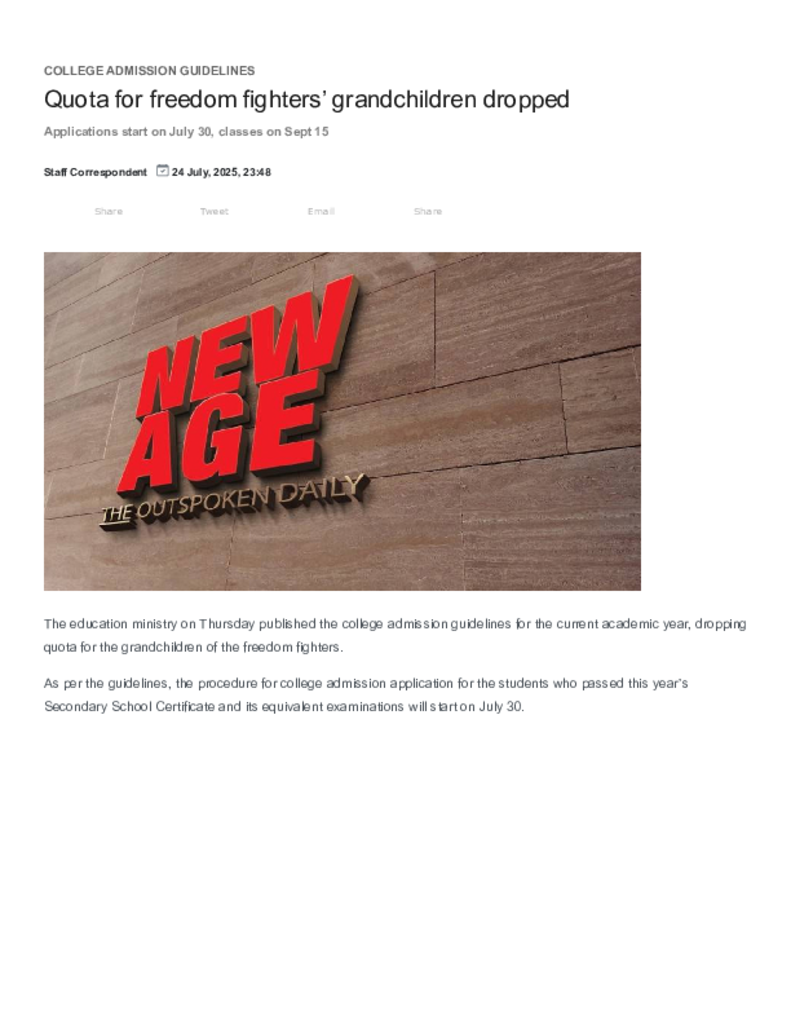 New Age _ Quota for freedom fighters’ grandchildren dropped.pdf Published on 24 July 2025 Newspaper New Age Category Educational Ministry / Departments General Education Download