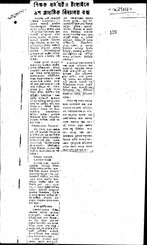 শিক্ষক ধর্মধট।। টাঙ্গাইলে ৯শ প্রাথমিক বিদ্যালয় বন্ধ Published on Newspaper দৈনিক সংবাদ Category General Education Download