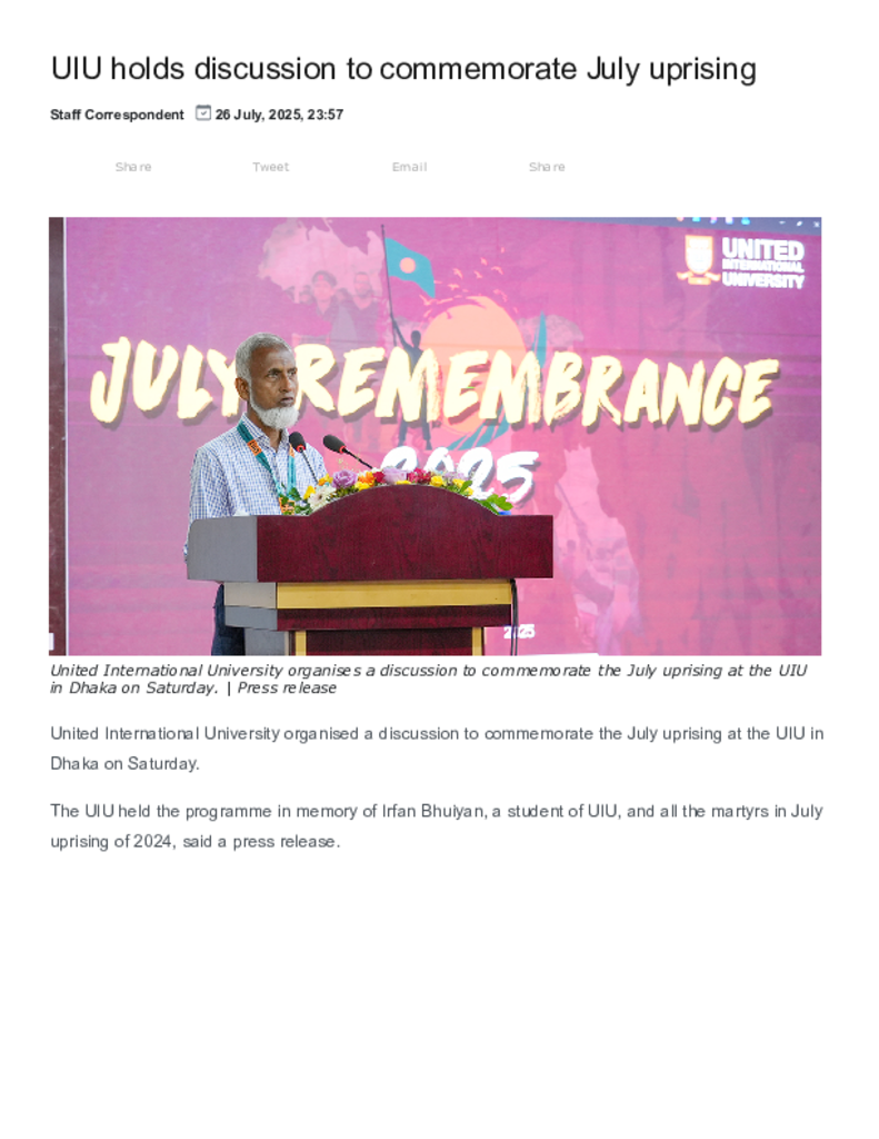 New Age _ UIU holds discussion to commemorate July uprising.pdf Published on 26 July 2025 Newspaper New Age Category General Education General Education Higher Education Private Download
