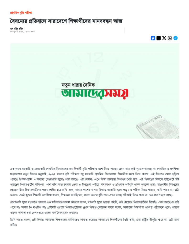 বৈষম্যের প্রতিবাদে সারাদেশে শিক্ষার্থীদের মানববন্ধন আজ.pdf Published on 30 July 2025 Newspaper দৈনিক আমাদের সময় Category Personal Opinion / Discussion / Commentary General Education Download