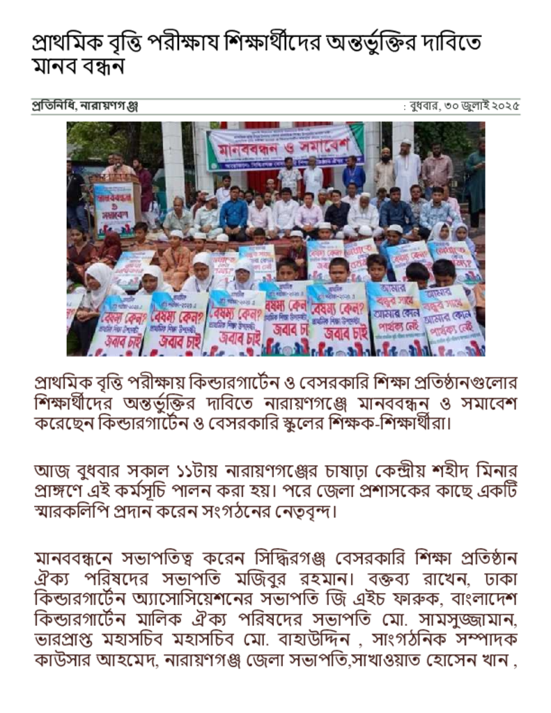 প্রাথমিক বৃত্তি পরীক্ষায শিক্ষার্থীদের অন্তর্ভুক্তির দাবিতে মানব বন্ধন _ সংবাদ অনলাইন.pdf Published on 30 July 2025 Newspaper দৈনিক সংবাদ Category General Education General Education Download