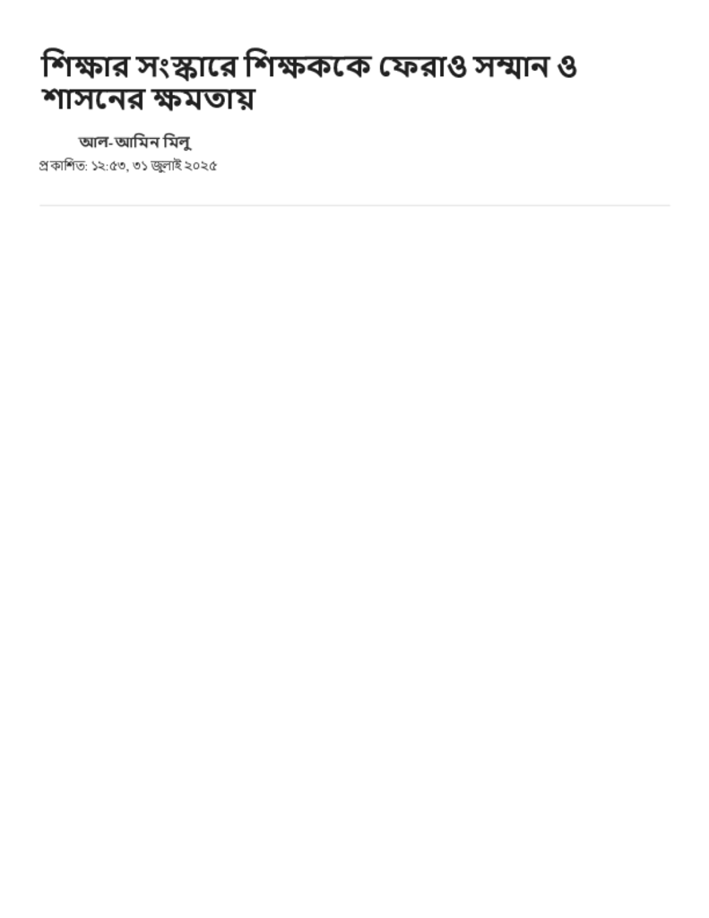 শিক্ষার সংস্কারে শিক্ষককে ফেরাও সম্মান ও শাসনের ক্ষমতায়.pdf Published on 01 August 2025 Newspaper দৈনিক জনকণ্ঠ Category Personal Opinion / Discussion / Commentary Download