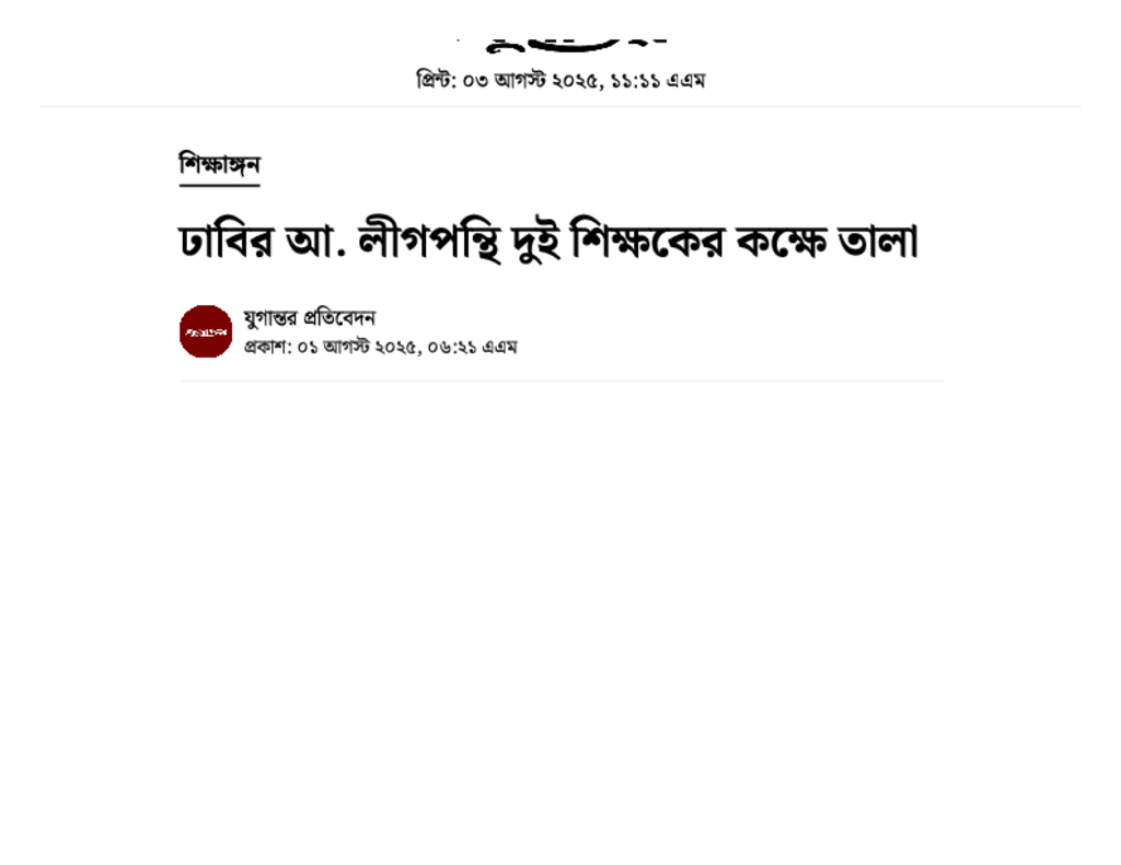 ঢাবির আ. লীগপন্থি দুই শিক্ষকের কক্ষে তালা.pdf Published on 01 August 2025 Newspaper দৈনিক যুগান্তর Category Others General Education Download