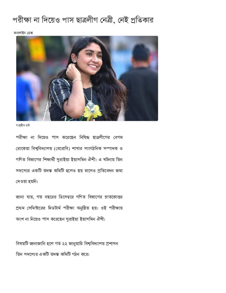 পরীক্ষা না দিয়েও পাস ছাত্রলীগ নেত্রী, নেই প্রতিকার.pdf Published on 02 August 2025 Newspaper দৈনিক কালের কন্ঠ Category Personal Opinion / Discussion / Commentary Download