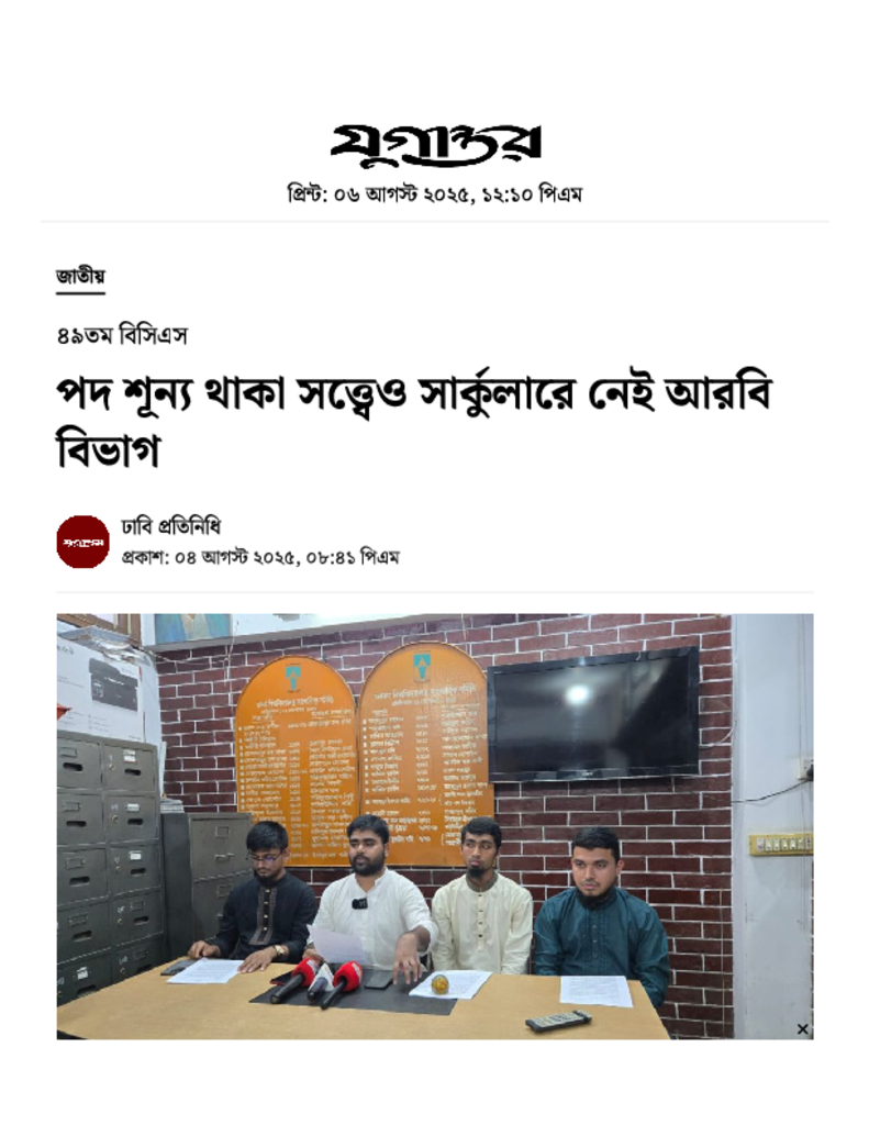 পদ শূন্য থাকা সত্ত্বেও সার্কুলারে নেই আরবি বিভাগ.pdf Published on 04 August 2025 Newspaper দৈনিক যুগান্তর Category Personal Opinion / Discussion / Commentary Download