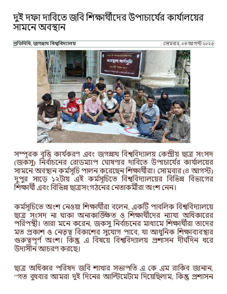 দুই দফা দাবিতে জবি শিক্ষার্থীদের উপাচার্যের কার্যালয়ের সামনে অবস্থান _ সংবাদ.pdf