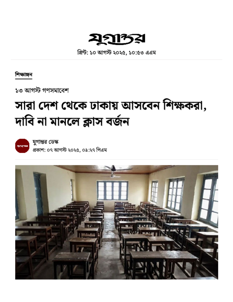 সারা দেশ থেকে ঢাকায় আসবেন শিক্ষকরা, দাবি না মানলে ক্লাস বর্জন.pdf Published on 07 August 2025 Newspaper দৈনিক যুগান্তর Category Personal Opinion / Discussion / Commentary Download
