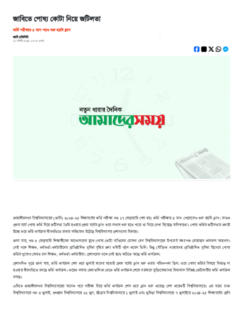 জাবিতে পোষ্য কোটা নিয়ে জটিলতা.pdf Published on 10 August 2025 Newspaper দৈনিক আমাদের সময় Category Admission / Seat Problem General Education Download