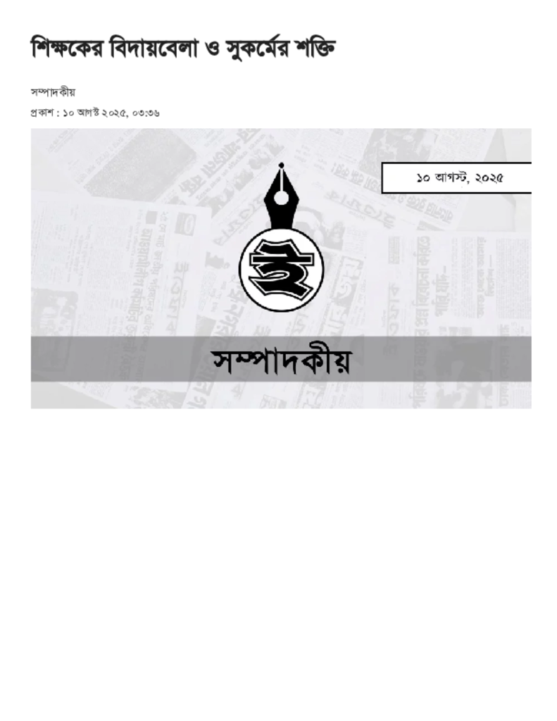 শিক্ষকের বিদায়বেলা ও সুকর্মের শক্তি.pdf Published on 10 August 2025 Newspaper দৈনিক ইত্তেফাক Category Personal Opinion / Discussion / Commentary Download
