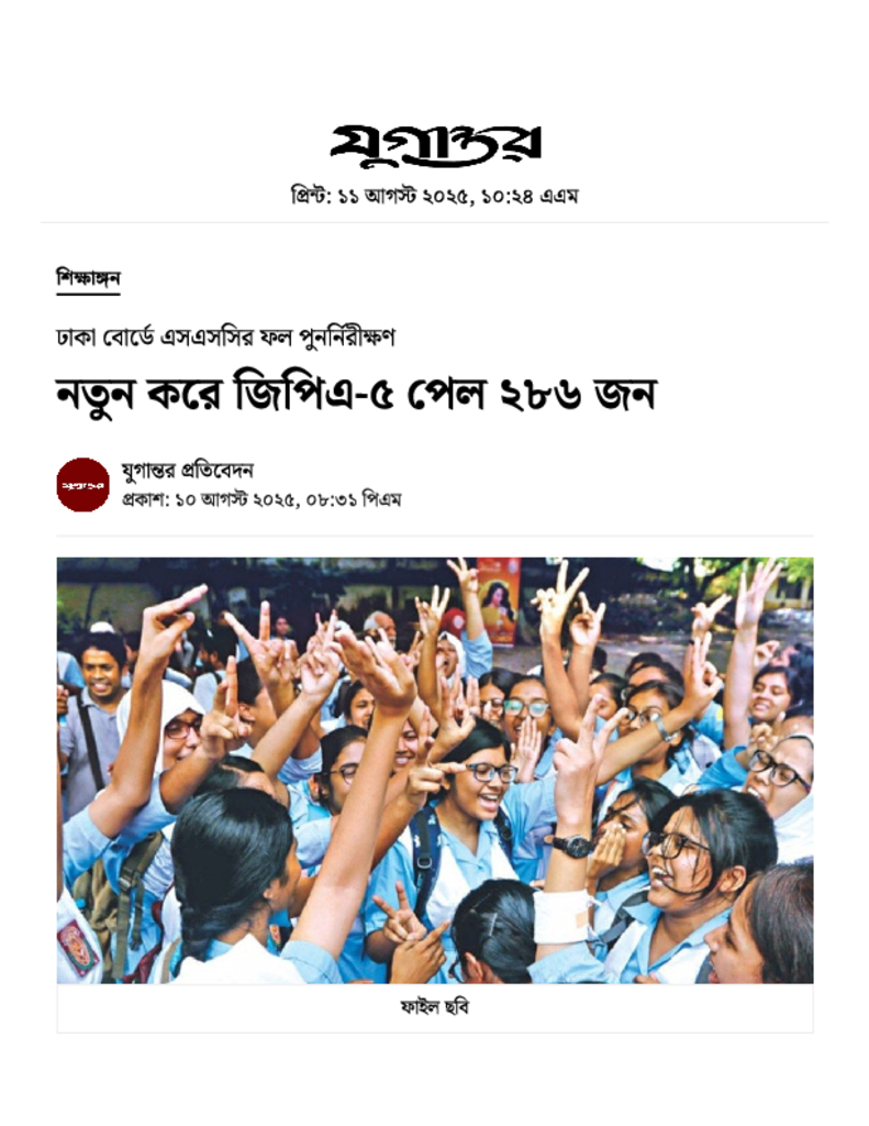নতুন করে জিপিএ-৫ পেল ২৮৬ জন.pdf Published on 10 August 2025 Newspaper দৈনিক যুগান্তর Category Public Examination Public Examination SSC Download