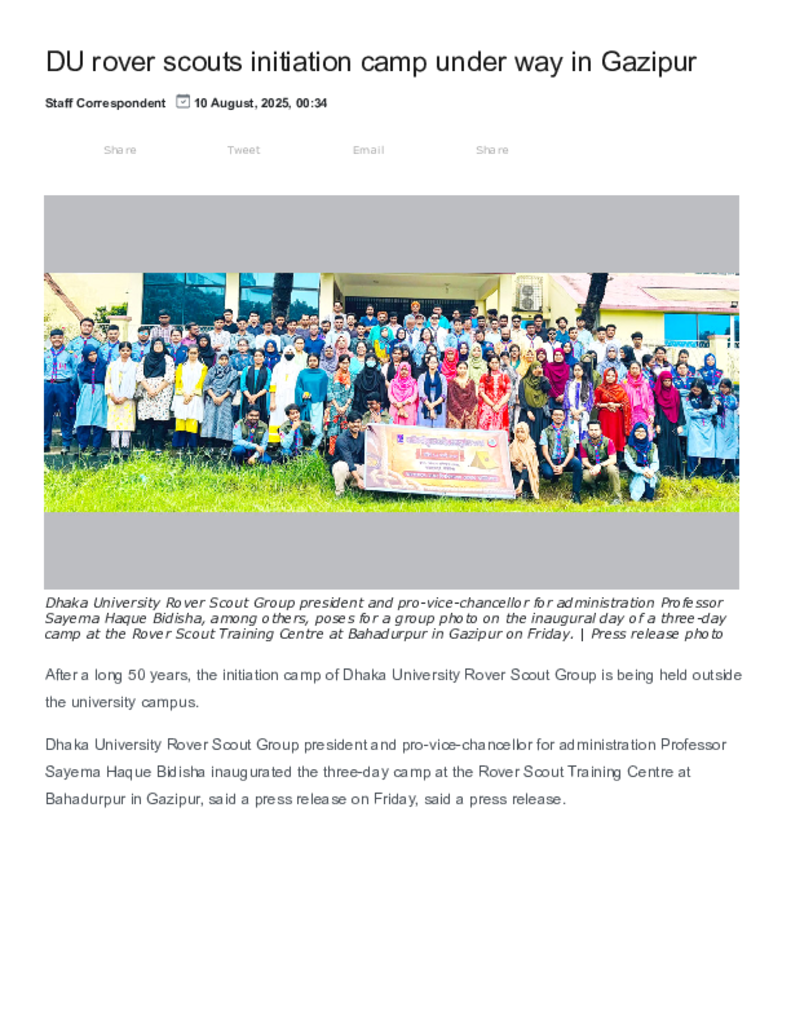New Age _ DU rover scouts initiation camp under way in Gazipur.pdf Published on 10 August 2025 Newspaper New Age Category Others General Education Download