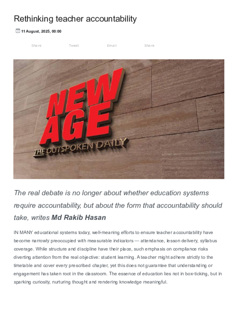 New Age _ Rethinking teacher accountability.pdf Published on 11 August 2025 Newspaper New Age Category Personal Opinion / Discussion / Commentary Download