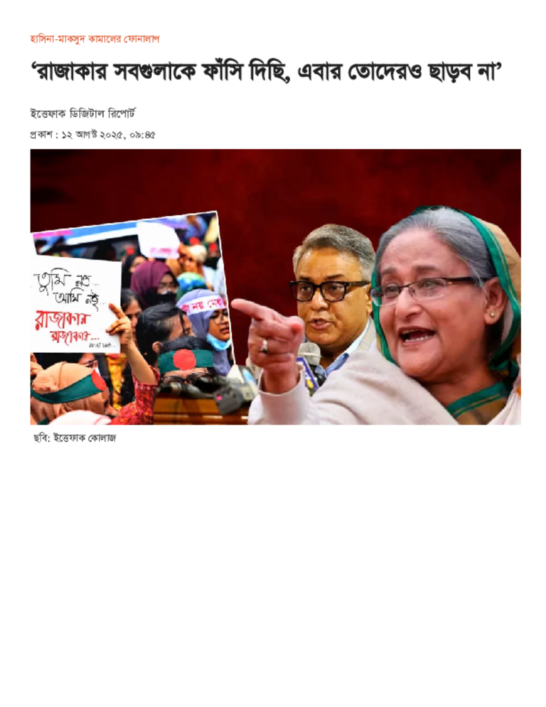 ‘রাজাকার সবগুলাকে ফাঁসি দিছি, এবার তোদেরও ছাড়ব না’.pdf Published on 12 August 2025 Newspaper দৈনিক ইত্তেফাক Category Personal Opinion / Discussion / Commentary General Education Download