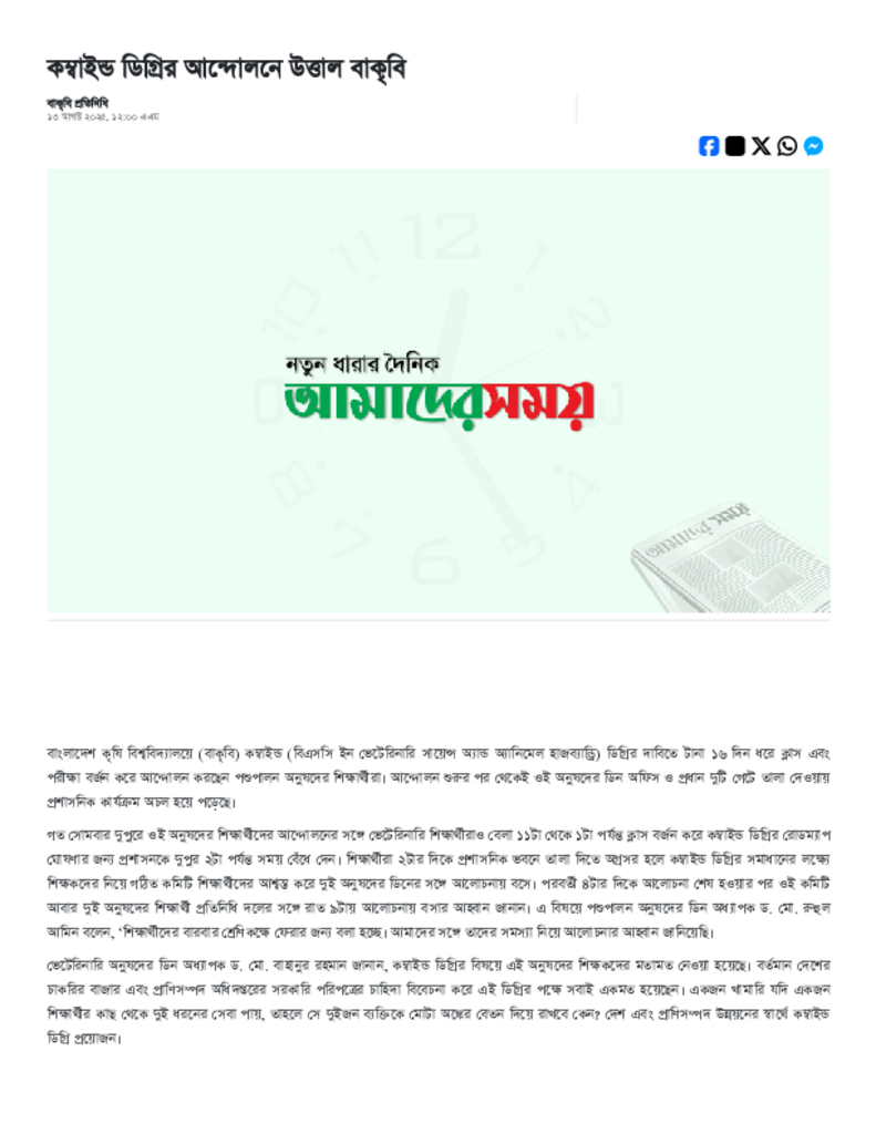 কম্বাইন্ড ডিগ্রির আন্দোলনে উত্তাল বাকৃবি.pdf Published on 13 August 2025 Newspaper দৈনিক আমাদের সময় Category Personal Opinion / Discussion / Commentary General Education Download