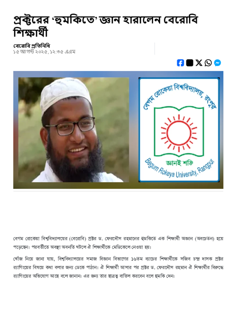 প্রক্টরের ‘হুমকিতে’ জ্ঞান হারালেন বেরোবি শিক্ষার্থী.pdf Published on 15 August 2025 Newspaper দৈনিক আমাদের সময় Category Others General Education Download