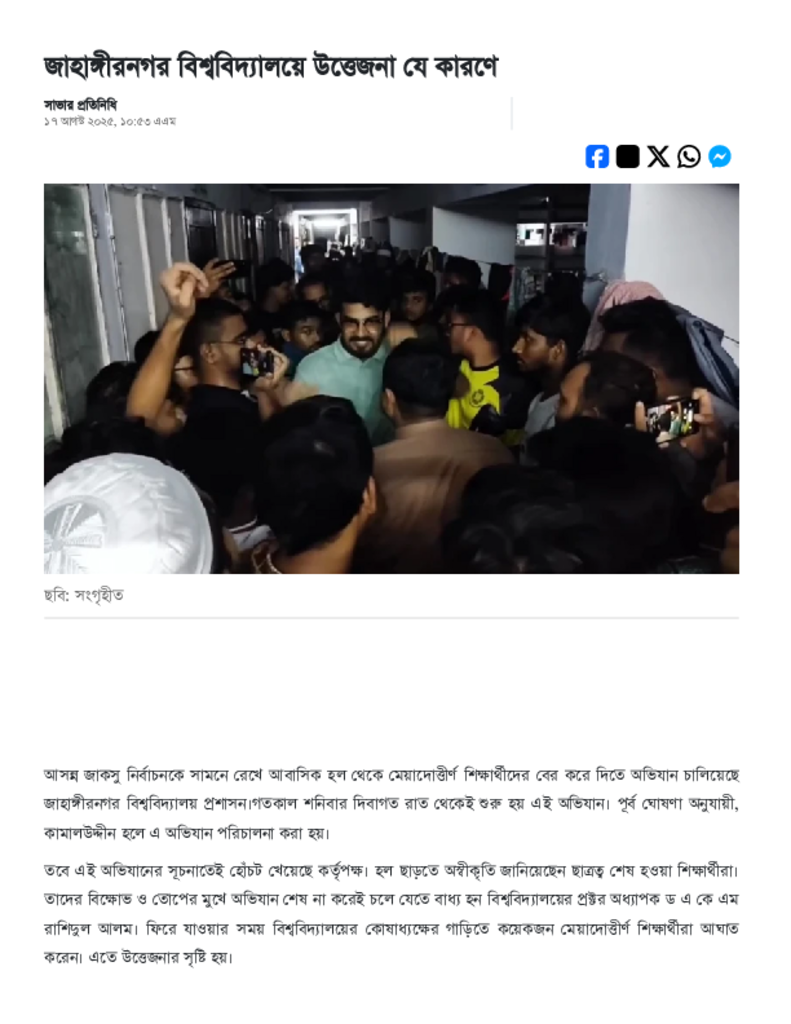 জাহাঙ্গীরনগর বিশ্ববিদ্যালয়ে উত্তেজনা যে কারণে.pdf Published on 17 August 2025 Newspaper দৈনিক আমাদের সময় Category Personal Opinion / Discussion / Commentary General Education Download