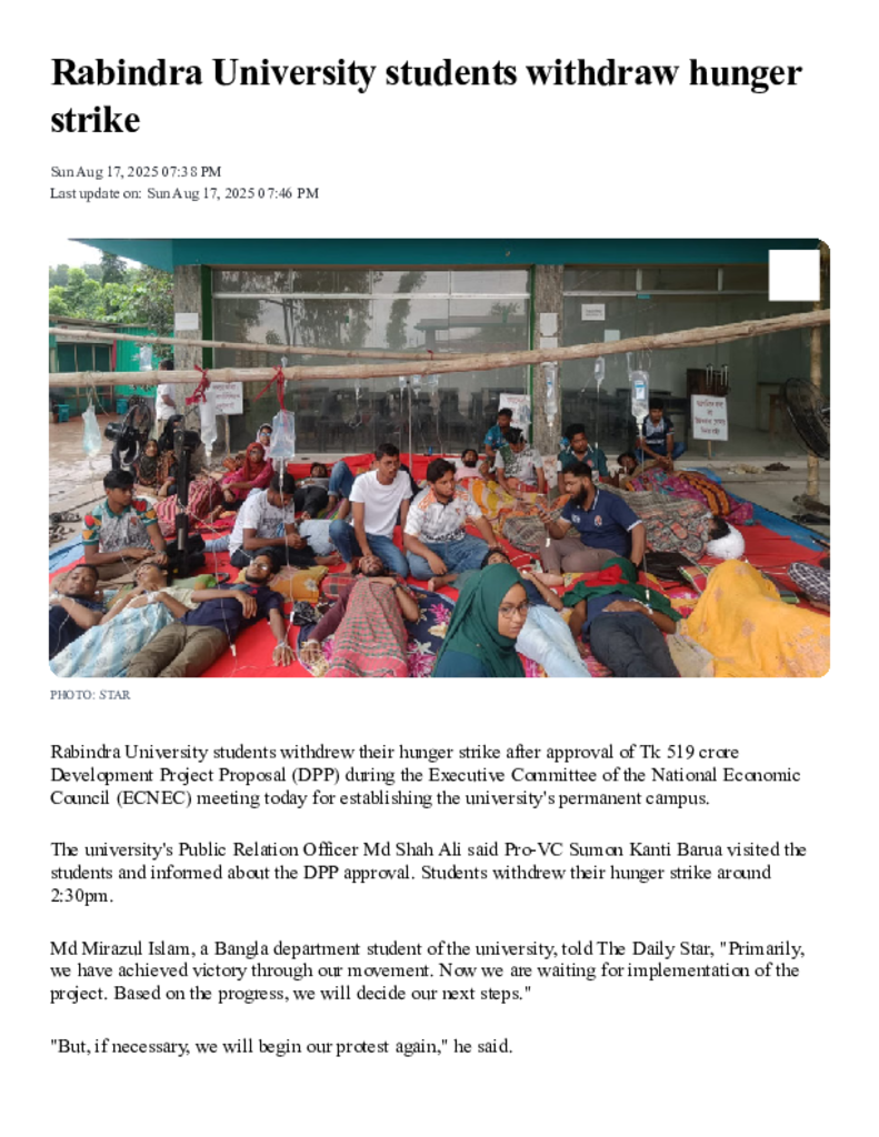 Rabindra University students withdraw hunger strike _ The Daily Star.pdf Published on 17 August 2025 Newspaper The Daily Star Category Others General Education Download