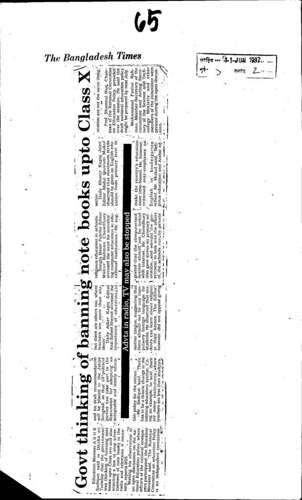 Govt thinking of banning note books upto ClassX Published on Newspaper The Bangladesh Times Category General Education Download