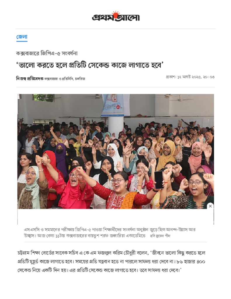 ‘ভালো করতে হলে প্রতিটি সেকেন্ড কাজে লাগাতে হবে’ _ প্রথম আলো.pdf Published on 17 August 2025 Newspaper দৈনিক প্রথম আলো Category Personal Opinion / Discussion / Commentary Download